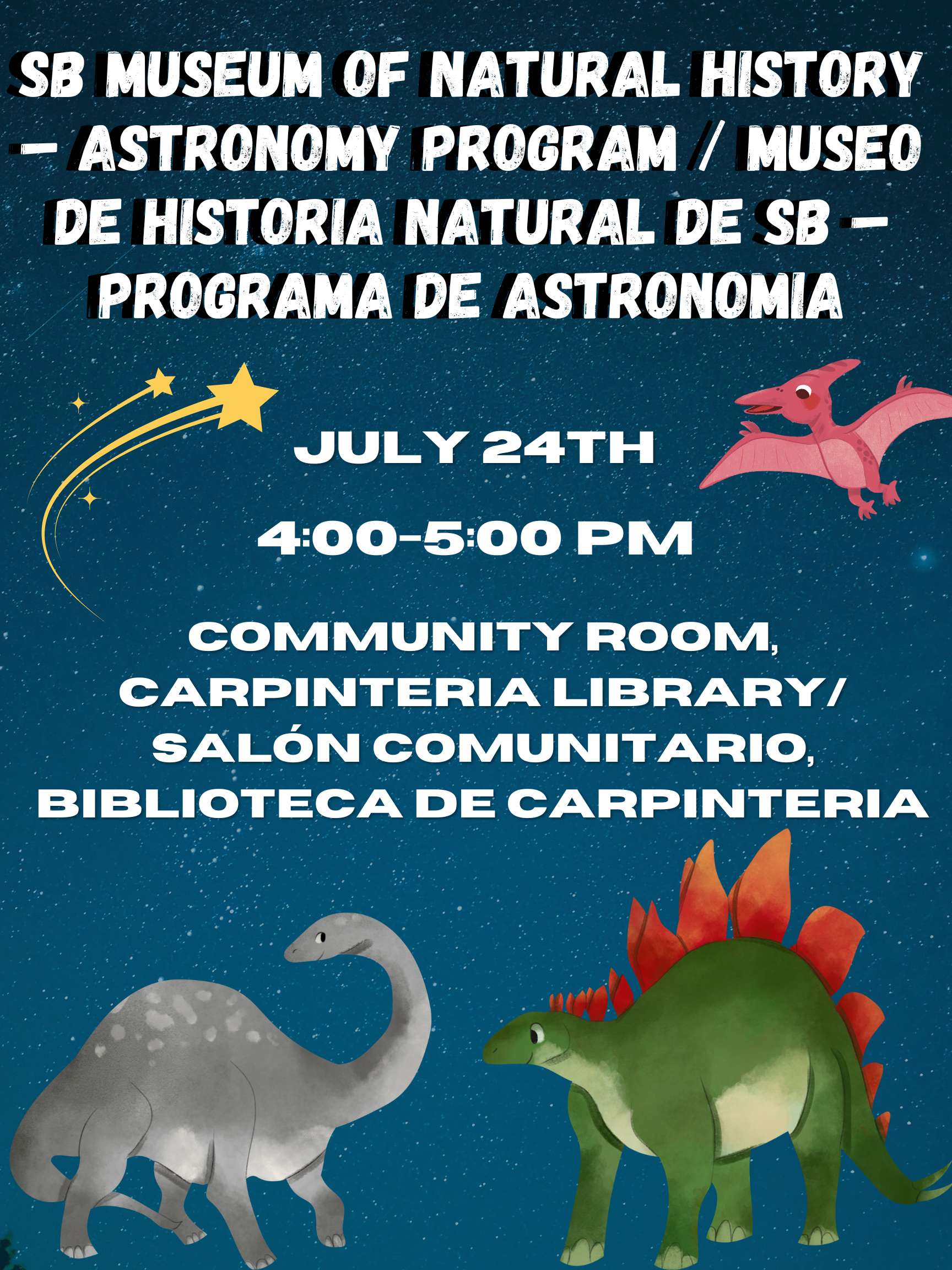 Discover the wonders of the universe with educators from the Santa Barbara Museum of Natural History! Hands-on activities and space science fun for the whole family. 🗓 Date: July 24🕓 […]